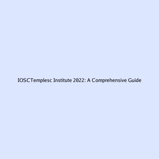 IOSCTemplesc Institute 2022: A Comprehensive Guide