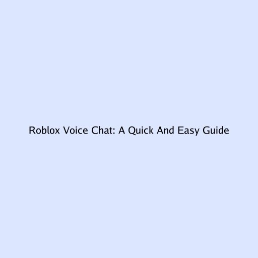 Roblox Voice Chat: A Quick and Easy Guide