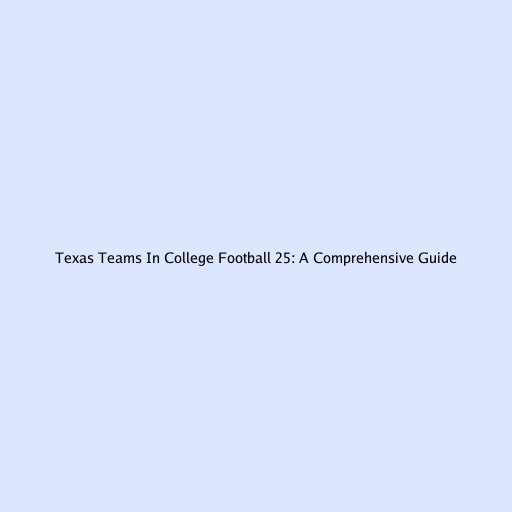 Texas Teams In College Football 25: A Comprehensive Guide